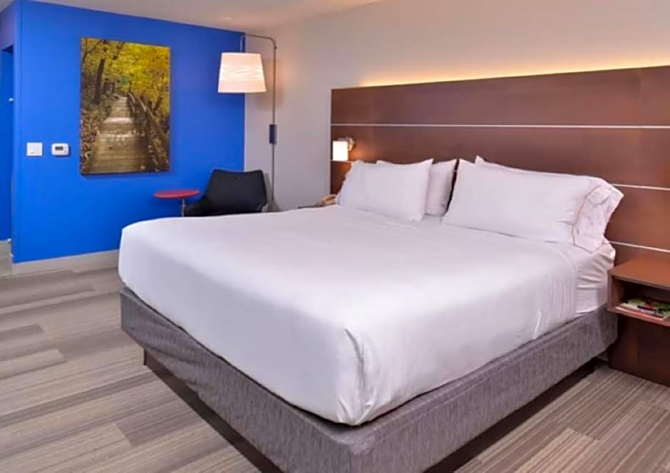 Featuring a 32-inch flat-screen TV, this room also provides a handheld showerhead, a microwave, and fridge.